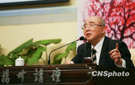 吴伯雄登临“扬州讲坛”,为扬州市民演讲《因缘与福报》