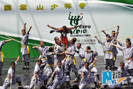 2010年5月1日,上海世博园正式开园,来自河南嵩山少林寺的武僧在世博园内为游客展示少林功夫。据这些表演的武僧透露,他们为了这台演出,已经排练了近一年,就为了在世博会上一展少林绝学。