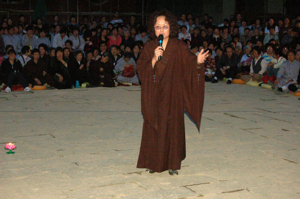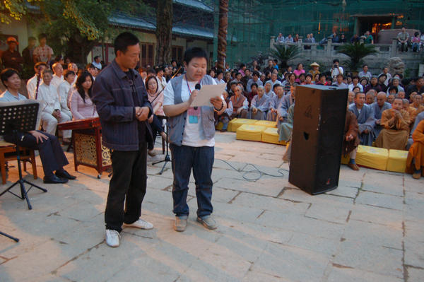 就在节目表演期间,一位年长的男居士和一位白发苍苍的女居士恳切要求发言,他们激动万分,各自叙述了看见虚空中出现佛光、莲花和西方三圣的瑞相,他们疾呼西方有佛!有极乐世界!大家一定要老实念佛,同到极乐世界去做同参道友!
