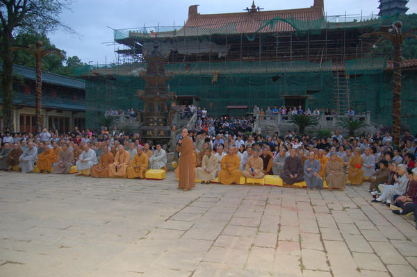 大安法师表示歉意说,东林寺正在搞基建,场地较乱,不得不在莲池旁边的露天搭起帐篷让大家经行,人多,空气不好,太阳大,比较热,大家能坚持下来很不一般,处境不好还能摄心念佛,说明大家的忍性得到了长养,不好的环境是修行的增上缘,与往年相比,这次佛七人数基本平稳,说明大家很珍惜这个机会,真为生死发大心来念佛。