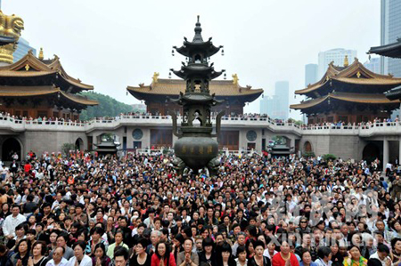 2010年5月20日10点,上海静安寺隆重举行15吨纯银大佛开光法会,法会由静安寺住持慧明法师主持。