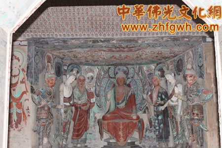 甘肃馆里,敦煌莫高窟45窟“现身”。这是甘肃专门请艺术家们按1∶1的比例打造的复原窟。