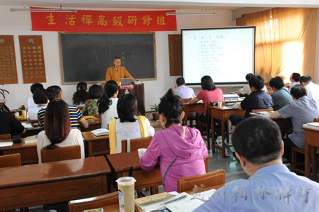 5月27日晚,观行法师为到访者介绍寺院仪轨。28日由华夏儒商国学院徐文明老师做题为《禅宗的智慧》的讲座。