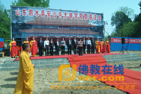 2010年5月2日上午,山东省泗水县安山寺隆重举行大雄宝殿奠基庆典法会。