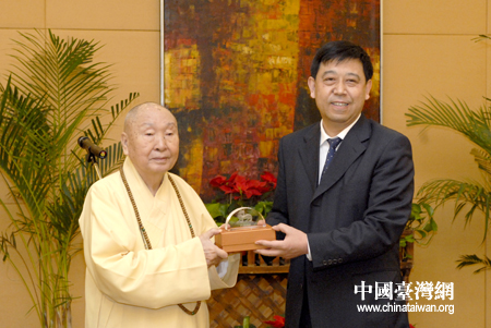 2010年5月6日晚,陕西省台办主任闫超英会见台湾中台禅寺惟觉长老率领的赴陕参访团一行。惟觉长老表示,两岸关系和平发展“百尺竿头更进一步”,还需要包括佛教界在内的两岸同胞共同努力。