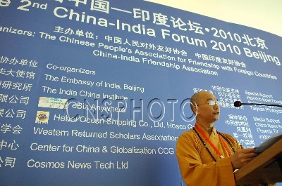 2010年5月15日上午,中国佛教协会副会长学诚法师出席在北京举行的第二届中国—印度论坛并发表演讲。本届中印论坛主题为《从天安门到印度门:面向二十一世纪的中印问题研究》,来自中印两国的学者、外交官、企业家以及其他国家的印度问题专家等百余人参加了当天的论坛,将通过主题演讲、学者评论、媒体问答等形式就中印政治、经济、文化发展与合作以及环境保护等问题进行讨论和交流。