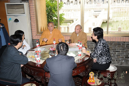 法禅法师亲自带领领导们参观了寺院后,就香山寺目前开展的创建和谐寺院工作向周平处长、杨崇华局长做了详细的汇报,周处长、杨局长一行对香山寺的创建活动,特别是管理模式给予了高度的评价。