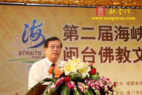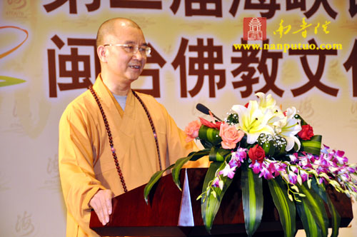 在开幕式上致辞的还有:厦门市委统战部副部长、市民宗局党组书记陈建德,世界佛教华僧会执行长心茂法师,中国佛教协会副会长、闽南佛学院院长圣辉大和尚,中国佛教协会副会长、福建省佛教协会会长学诚大和尚,他们一致希望通过此次闽台佛教文化交流研讨会的召开,两地佛教界能够共同努力奉献智慧,契理契机,将两岸佛教文化交流推向新的发展领域,并预祝大会圆满成功。