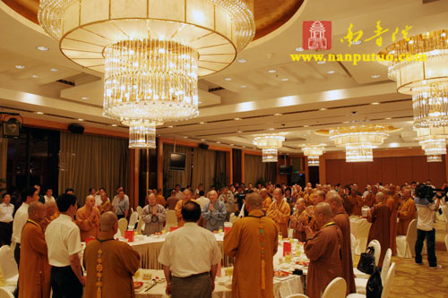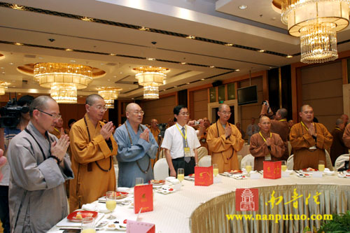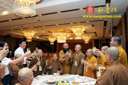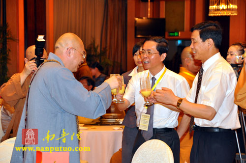 主持人宣布开幕式结束后,由省民宗厅、市民宗局、省佛教协会、市佛教协会、南普陀寺共同宴请两岸嘉宾。大家举杯同庆,共襄盛事。