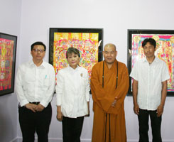 中国佛像画艺术家弘云介绍说,这是他首次在国内寺院参加画展,而且是在供奉着神圣的佛牙舍利的灵光寺,他倍感殊胜。他指出森内敬子艺术家是用现代手法诠释佛教,并赞叹她的创作手法非常好;多傑楞布艺术家的创作多是佛教密宗的佛像、唐卡,同样很具特色;而他自己的作品则是运用写意的手法绘画出最传统的佛像。他说此次画展的主题为“和谐”,即指佛教文化、佛教艺术的和谐,并表明他们是通过绘画这种无声的方式来弘扬佛教,传达佛教文化的。