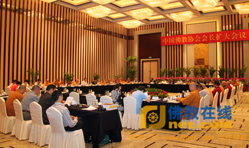 2010年6月11日上午九时,中国佛教协会会长扩大会议在江苏省南京市紫金山庄会议中心紫金厅召开。