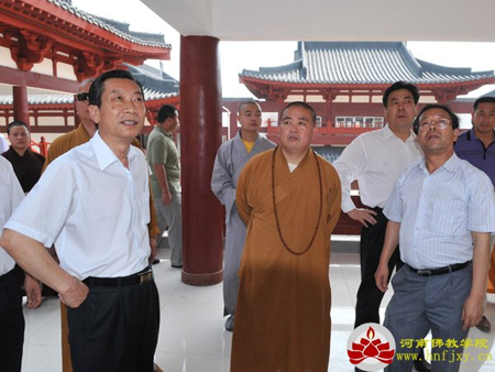 2010年6月17日,河南省宗教局局长刘世军、副局长王宏文带领由省宗教局有关人员和省佛协会长永信法师等省佛协有关人员组成的评审组到桐柏县,就河南佛教学院筹备情况进行评审。南阳市委常委、统战部部长王建民以及桐柏县委、县政府和市直有关部门负责同志陪同评审。