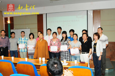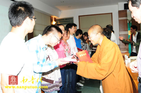 2010年6月4日,2010年“南普陀寺慈善会奖助学金”发放仪式在厦门大学人文学院举行,普陀法师、德鸣法师、静仁法师一行出席仪式。