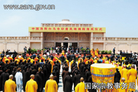今年是中印两国建交60周年。5月29日上午,白马寺印度风格佛殿落成仪式在千年古刹——白马寺隆重举行,印度总统普拉蒂巴·德维辛格·帕蒂尔和全国政协副主席王志珍出席佛殿落成仪式,并为佛殿剪彩揭碑。
