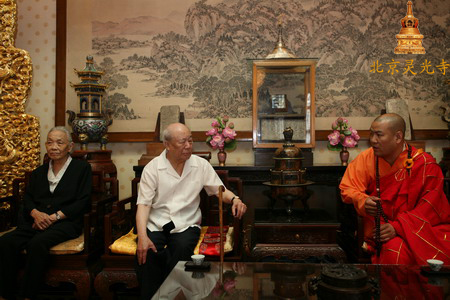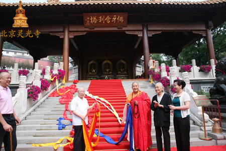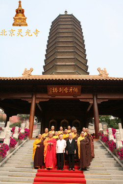 2010年6月8日上午,北京灵光寺举行欧阳中石先生题“佛牙舍利塔”揭匾仪式,灵光寺方丈常藏法师主法并与欧阳中石共同揭匾。