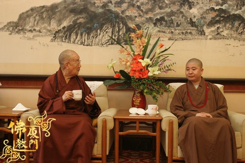 净良长老对厦门佛教协会、南普陀寺筹备承办“第二届海峡论坛·闽台佛教交流研讨会”表示关心和慰问,并就“闽台佛教交流研讨会”的相关事宜进行了交流,相互交换了意见。