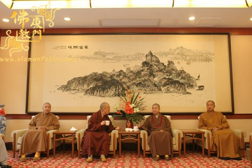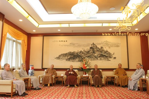 6月2日上午,台湾佛教会理事长净良长老一行4人乘船到厦门,拜访厦门佛教协会会长、南普陀寺方丈则悟大和尚。厦门佛教协会秘书长净心法师、副秘书长仁慈法师陪同则悟大和尚热情接待了净良长老一行,并在南普陀寺普照楼二楼会谈。