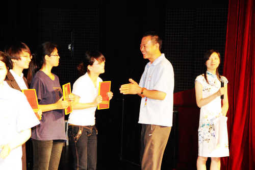 在决赛之后的颁奖仪式上,东林慈善的师兄和南大国学社各位顾问教授为获奖选手颁发了奖杯、证书和奖金。南京大学文学院党委书记姚松教授在致辞中对获奖选手表示衷心的祝贺,并对为传统文化复兴做出了大量努力的东林慈善表示了真挚的感谢。他表示东林慈善在弘扬传统文化上所做的努力值得钦佩,东林慈善的理念值得肯定和推广学习。他认为本次活动非常成功,并希望同学们再接再厉,在学习和弘扬传统文化的道路上继续努力。在颁奖结束后,李良国师兄和各位获奖选手亲切座谈,在祝贺获奖选手的同时,也介绍了东林慈善的理念,并勉励各位同学继续努力,取得更大的成绩。各位同学纷纷表示愿意报名参加东林寺夏令营,进一步了解佛教和东林。