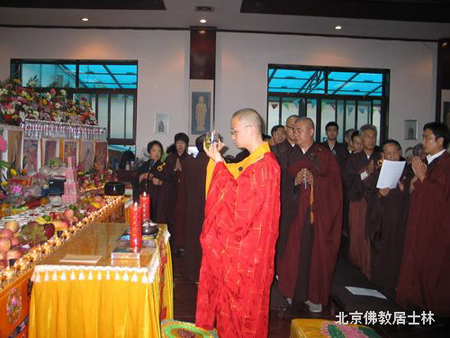 2010年6月3日,北京佛教居士林大悲法会圆满日举办了庄严隆重、殊胜吉祥的斋天法会,中国佛学院真体法师带领大众依据《斋天科仪》依次进行。