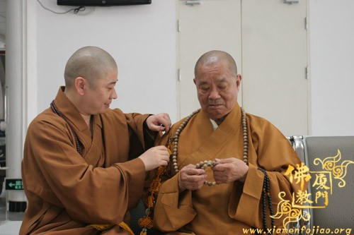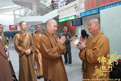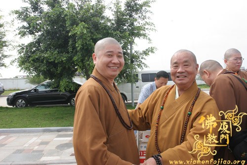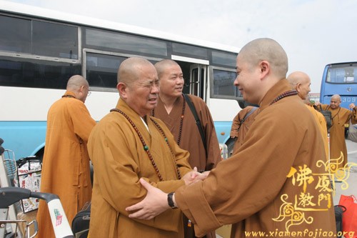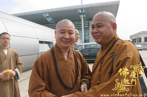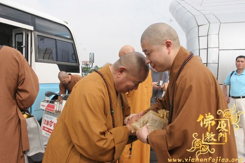 今天上午,圆宗长老一行返回厦门,从厦门五缘湾五通码头乘船回到台湾。福建省佛教协会副会长、厦门市佛教协会会长则悟大和尚到五通码头送行,并送沉香佛珠给圆宗长老留念。祝愿长老法体安康,友谊地久天长。