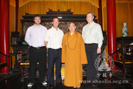 2010年6月13日下午,澳大利亚少文市市长保罗·格林、奥地利阿尔巴赫市市长马丁·克鲁里斯先生,加拿大安大略省利兹千岛市市长弗兰克·金塞拉一行,到河南省嵩山少林寺参访,少林寺方丈永信法师热情接待。