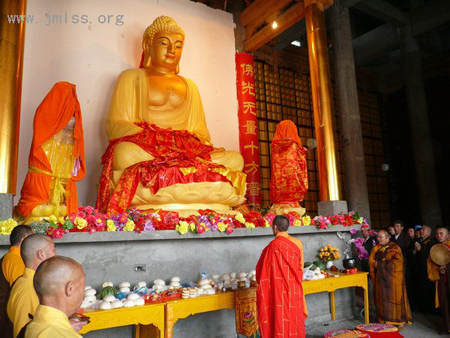 2010年6月9日上午,甘肃省武威市鸠摩罗什寺隆重举行了大雄宝殿大佛迎请安奉仪式,鸠摩罗什寺住持理方法师主持迎请洒净安奉仪式,鸠摩罗什寺全体僧众及护法居士上百人参加了法会。