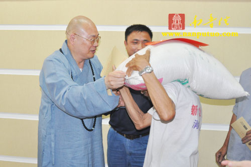 捐赠仪式上,圣辉大和尚鼓励灾民,坚定信心,抗洪救灾,在党和政府以及爱心人士的帮助下,一定会尽快渡过难关,重建家园。随后圣辉大和尚又亲自为灾民们发放了慰问金和大米。