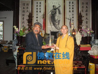 诚信法师向大家介绍了天童寺的历史与现状,并与达玛瓦蒂一行就中国与尼泊尔的佛教渊源作了交流。最后,双方互赠礼品并合影留念。