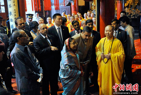 印度总统帕蒂尔女士一行到上海玉佛禅寺访问