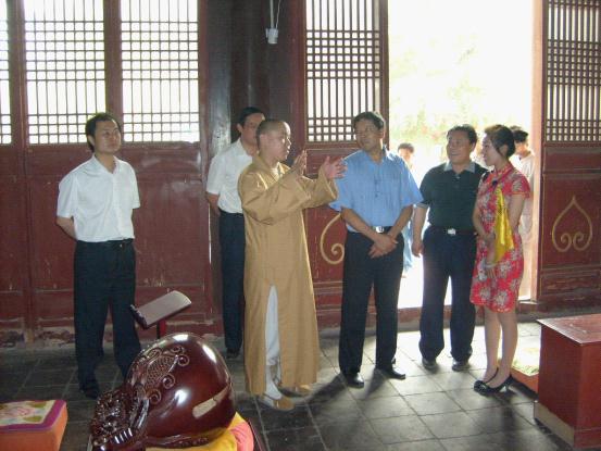 佛教在线山东讯 2010年6月2日,山东省宗教局马银平副局长在淄博市宗教局于精忠局长、王爱军副局长,周村区蔡华刚副区长,周村区宗教局刘树林局长、王延强副局长的陪同下,到周村区千佛寺视察指导工作,受到了千佛寺住持仁宣法师的热情接待,双方进行了亲切交谈,马银平副局长对千佛寺的相关工作表示肯定,并对千佛寺的发展前景提出了宝贵的意见和建议,最后,马银平副局长一行与仁宣法师在寺院山门前合影留念。