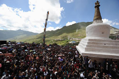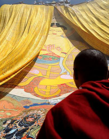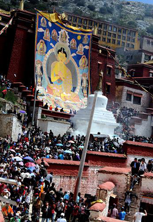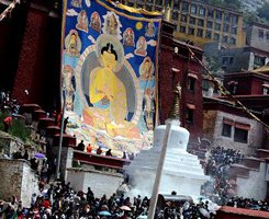 2010年7月25日,具有600年历史的中国西藏甘丹寺迎来了一年一度的展佛节。