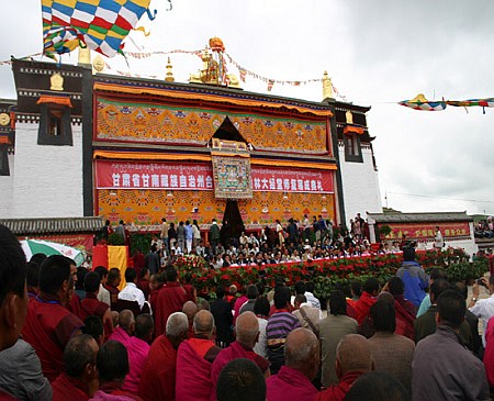 2010年7月15日,位于甘肃省甘南藏族自治州合作市城区北郊的合作寺院异常热闹、祥和,来自合作市及周边兄弟县市的僧众身着节日盛装,和甘、青、川的宗教界人士,省内外嘉宾齐聚在合作寺院大经堂前的广场上,共同庆祝合作寺院噶丹曲林大经堂修复落成。