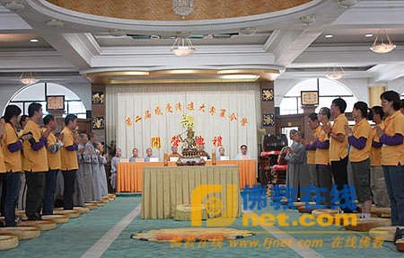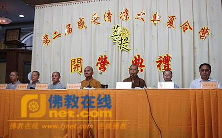 在开营典礼上,首先由见宏法师作开营致词,随后,如瑞法师、净戒法师分别为学员们作了简短而精彩的开示。最后,学员们在融圣法师的带领下一起合唱了夏令营营歌《感受清凉营歌》。