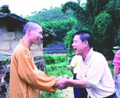 怀集村民孔令枝初步脱贫后,拉着帮助过他的仲贤法师的手说:“走,到我家喝茶去!”(资料图片)