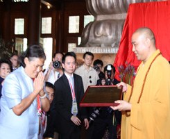 泰国公主诗琳通殿下亲手把捐赠纪念匾牌交给了慧明法师