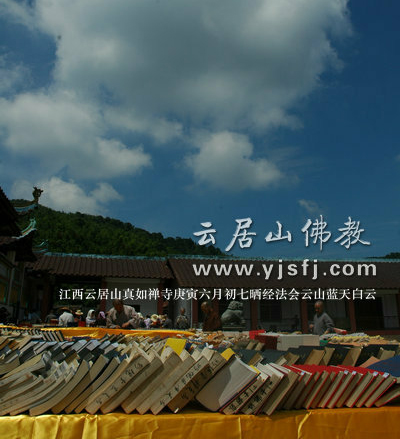 2010年7月18日,农历庚寅六月初七,江西云居山真如禅寺举行一年一度的晒经法会,真如禅寺方丈纯闻法师主法。真如禅寺四众弟子参加法会并晾晒佛经,藉此表达对佛陀教法,特别是“法宝”的敬重之情,并虔诚礼拜发愿。