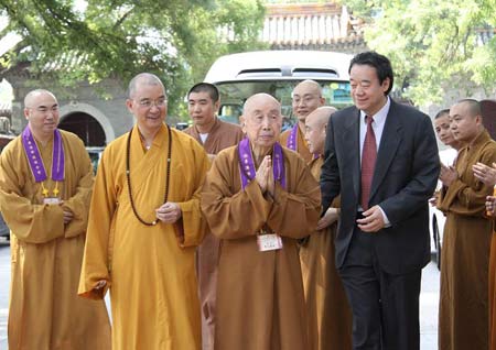 2010年7月20日上午,由香港佛教联合会会长觉光长老为团长的港佛联第55届董事会代表团一行24人,前往中国佛教协会参访。中国佛教协会会长传印长老、副会长学诚法师、秘书长王健,副秘书长张琳、广济寺方丈演觉法师、湛如法师、宗家顺、卢浔等热情迎接。