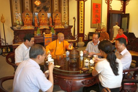 2010年7月16日下午,澳大利亚维州佛学明月居士林李戒明林长,徐秋汉荣誉会长和马锦鑫名誉主席访问团一行到浙江绍兴炉峰禅寺参访,炉峰禅寺方丈净芳法师陪同宾客参观寺院,双方并在方丈室品茗交谈,市佛协袁国辉秘书长等陪同参观。