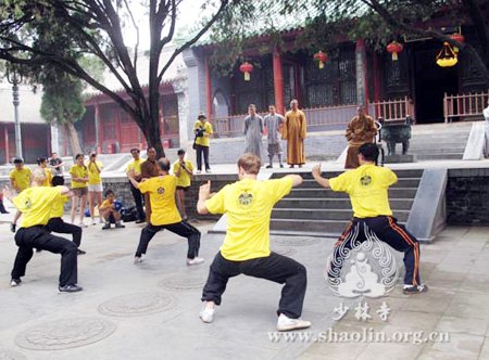 2010年7月5日上午8时,美国洛杉矶少林寺文化中心的17名少林弟子在延续法师的带领下,到河南登封嵩山少林寺朝拜。
