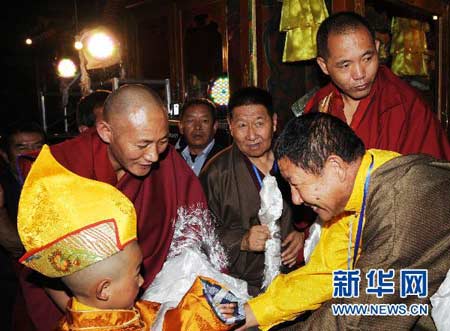 2005年11月30日出生的候选灵童洛桑多吉中签,待报西藏自治区人民政府批准后,将继任为第六世德珠活佛。(图片来源:新华社 觉果 摄)