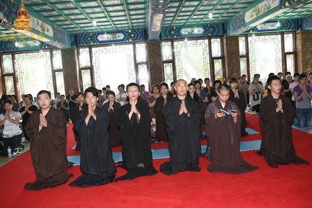 2010年7月3日上午,北京市灵光寺举办传授“三皈五戒”,大约400人得受三皈五戒。