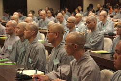 戒子们专注听大师开示。(图片来源:佛光山全球资讯网)