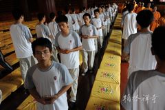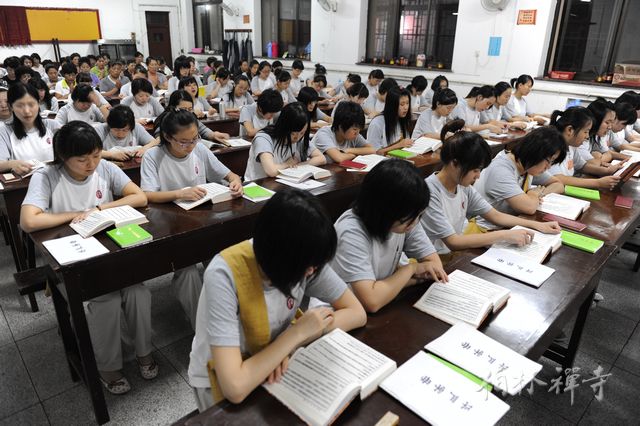 7月22日晚上,全体营员分为两组,分别进行小参和诵经活动。明海大和尚等十位法师在小参中一对一地回答了部分营员的问题,营员们普遍反映非常受用。另一组营员在斋堂中跟随法师们一同诵读《大方广佛华严经》,营员们在虔诚的诵唱中体味着其中无上甚深的法味。