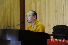 上午8:00,道智法师在文殊阁为营员们作了禅修指导。9:00,香港理工大学荣休校长潘宗光教授为营员们作了题为《十二因缘》的讲座。潘教授对“十二因缘”的解释与传统的解释不完全一致,讲座更多地针对了现代社会所面对的各种烦恼,潘教授通过“工作时遇到老板”、“怀疑丈夫对自己不忠”、“与丈夫晚饭庆祝”等案例形象而深入地为大家诠释了“十二因缘”的内涵。
