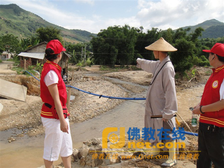 近日,广东省惠州市龙门县地区遭遇特大暴雨,其中龙田、龙城、平陵等镇受灾十分严重,受灾人口约6.5万人,紧急转移约11,190人。面对灾情,2010年7月10日,广东省龙门县万寿古寺住持心廉法师、六祖慈善普济会龙门分会秘书长廖建平携同龙门志愿者及信众,前往受灾最为严重的灾区龙田镇三洞村进行慰问,为灾民捐赠物资。