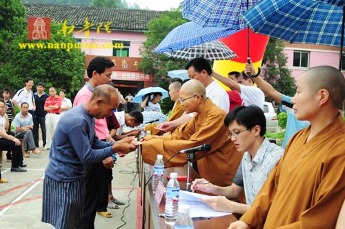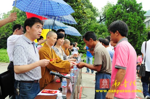 捐赠仪式上,普陀法师等代表南普陀寺慈善会为灾民一一发放了善款,并鼓励仙源乡亲,发挥革命精神,抓好生产自救,恢复生产,尽快过上幸福平安的生活。
