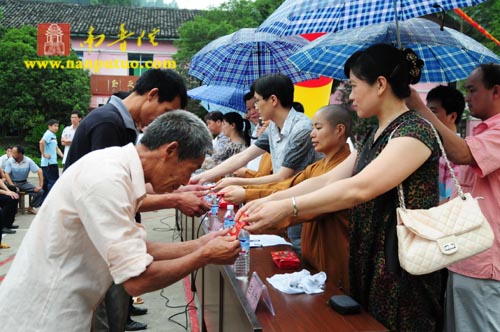 7月14日,遵照厦门南普陀寺慈善会会长圣辉大和尚嘱托,普陀法师、德鸣法师、通灵法师、静仁法师一行来到江西省宜宾县仙源乡慰问受灾群众,并为150户乡亲带去了15万元的救灾款,每户发放善款1000元,帮助他们早渡难关,重建家园。
