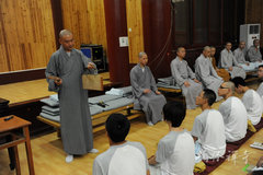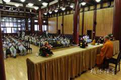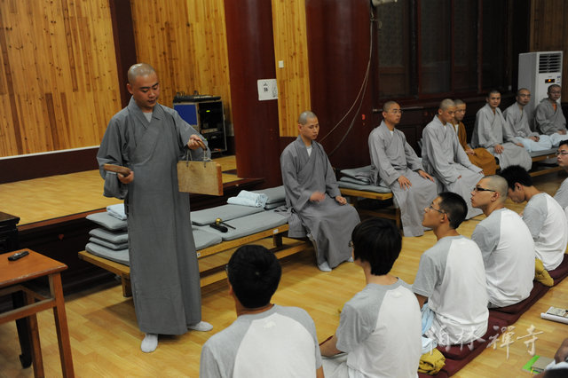 晚上7:30,道智法师在文殊阁为大家讲解了在殿堂、禅堂、斋堂等处应遵守的规矩和礼仪,并简要介绍了寺院的人事制度、作息时间、各种法器等,为营员们的夏令营生活打下了良好的基础。
