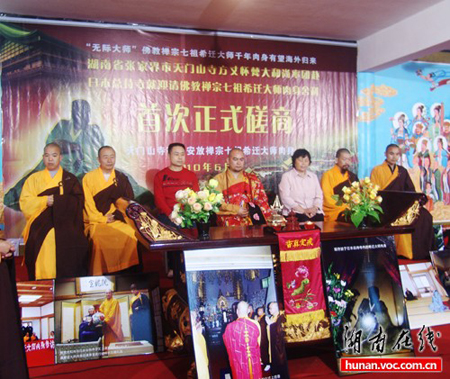 磋商团一行抵达日本后,日本横滨总持寺(日本曹洞宗总部)方丈大道晃仙法师、监院横山敏明法师、副监院山岸弘文法师、三香美瑛法师等热情接待了张家界天门山寺方丈怀梵法师一行,并最终承诺尽快协商“希迁大师肉身返湘一事”,而2011年9月正好是总持寺重修一百年及希迁大师肉身到日本一百年纪念,两国佛教曹洞宗四众弟子共同愿意2011年能迎请希迁大师肉身返国回湘,并安奉至张家界天门山寺。虽然这个承诺虽不能马上实现,但已算是多年迎请工作的一个大的进展。