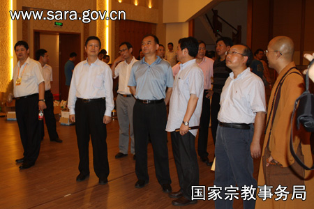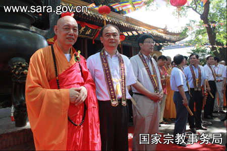 8月10日上午,齐晓飞副局长出席了普陀山普济寺道慈法师的升座庆典活动,对道慈法师荣膺普济寺方丈表示祝贺,对道慈法师担任普陀山佛协会长以来所做的工作给予肯定,希望普陀山僧众在当地党和政府的领导下,在道慈法师的带领下,爱国爱教,团结进步,加强自身建设,弘扬观音文化,落实大乘佛教精神,为经济社会的发展做出应有的贡献。受王作安局长和齐晓飞副局长的委托,一司司长徐远杰代表国家宗教事务局在庆典活动上致辞。